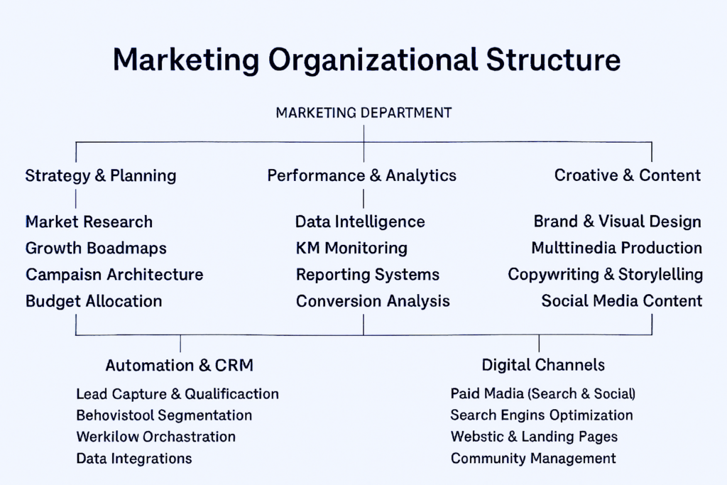 The team brings deep expertise across digital advertising, search engine optimization, social media strategy, content production, analytics, and customer relationship management. These capabilities are supported by advanced marketing technology and structured operational processes that enable precise audience segmentation, conversion optimization, and real-time performance monitoring across multiple channels.